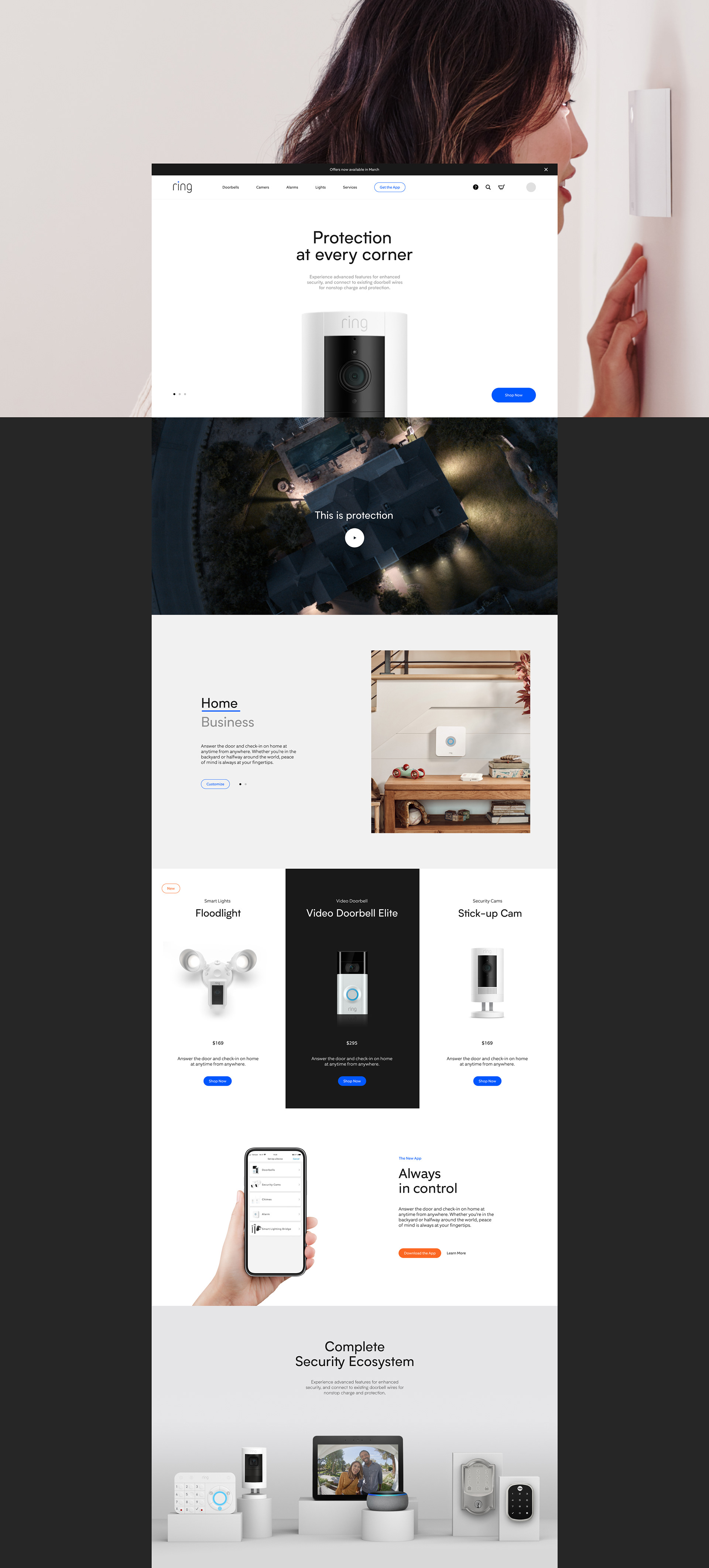 Future vision looking to inspire the art direction and storytelling with a contemporary design approach, showing animated product context to leverage a better education and brand experience for Amazons Ring.